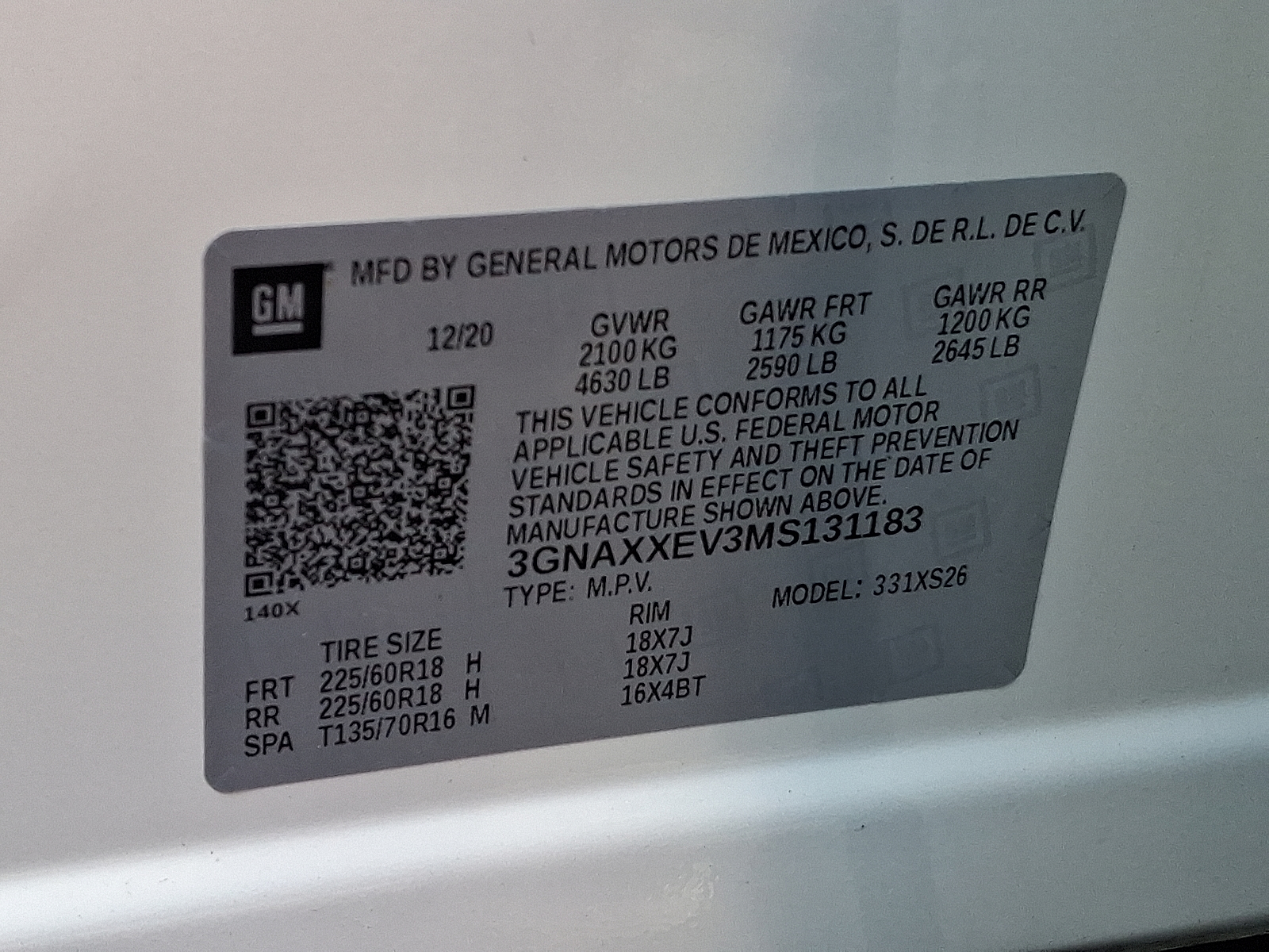 VIN 3GNAXXEV3MS131183
